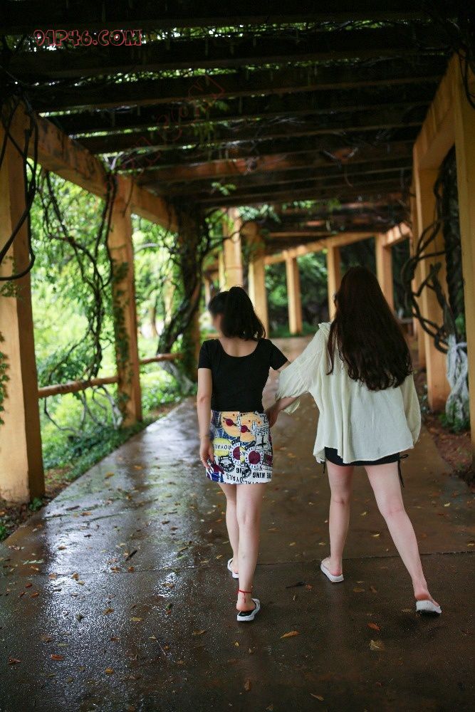 连绵细雨后的傍晚林间,二美携手漫步其中。